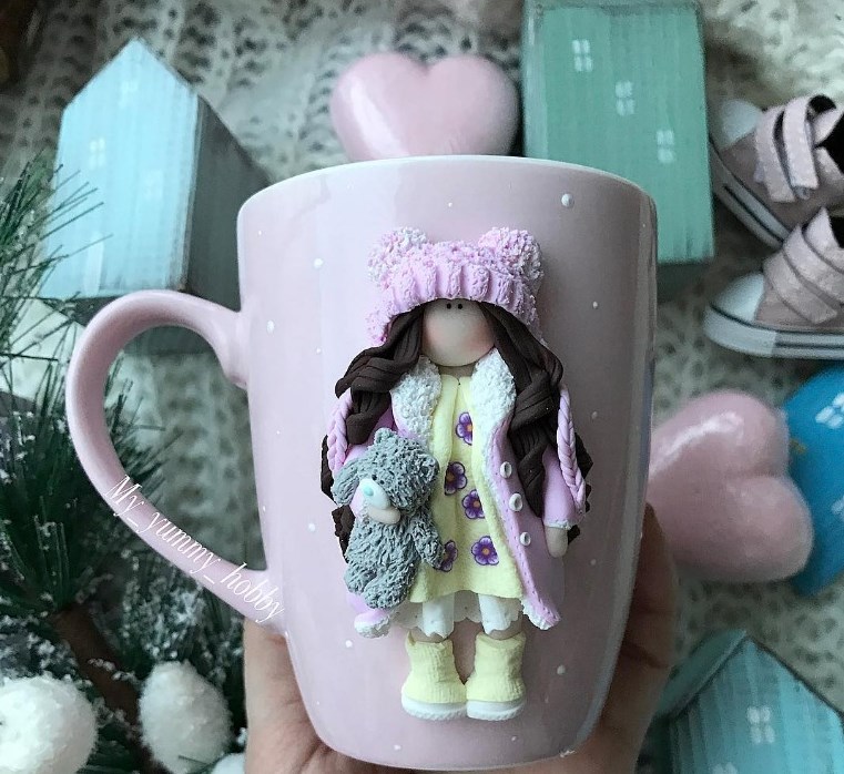 [Лепка] Мастер-класс Зимняя куколка (лепка на кружке) (my_yummy_hobby)